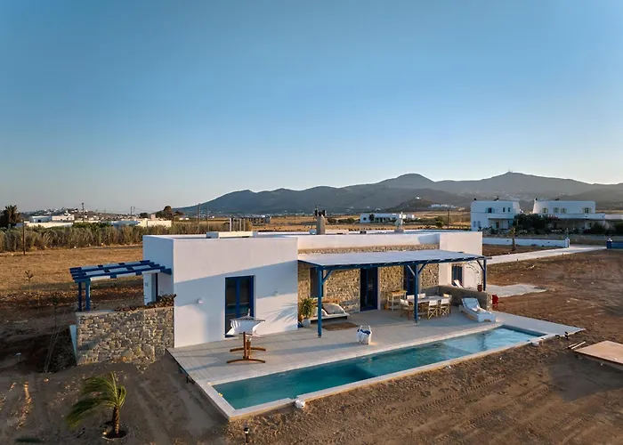 寝室2室のBlue & Green In Luxury パロス島 別荘は、宿泊施設から2.6キロメートル離れたAgios Antonios Churchなどの近くの観光スポットに近接しています。 この浴室2室の別荘に駐車場とプ-ルの景色を望むテラスがあります。